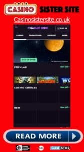 Cosmic Spins sister site, Online Casino London is now open. It is similar to Cosmic Spins with an analogous site creation and different with Top Strike Championship casino games.